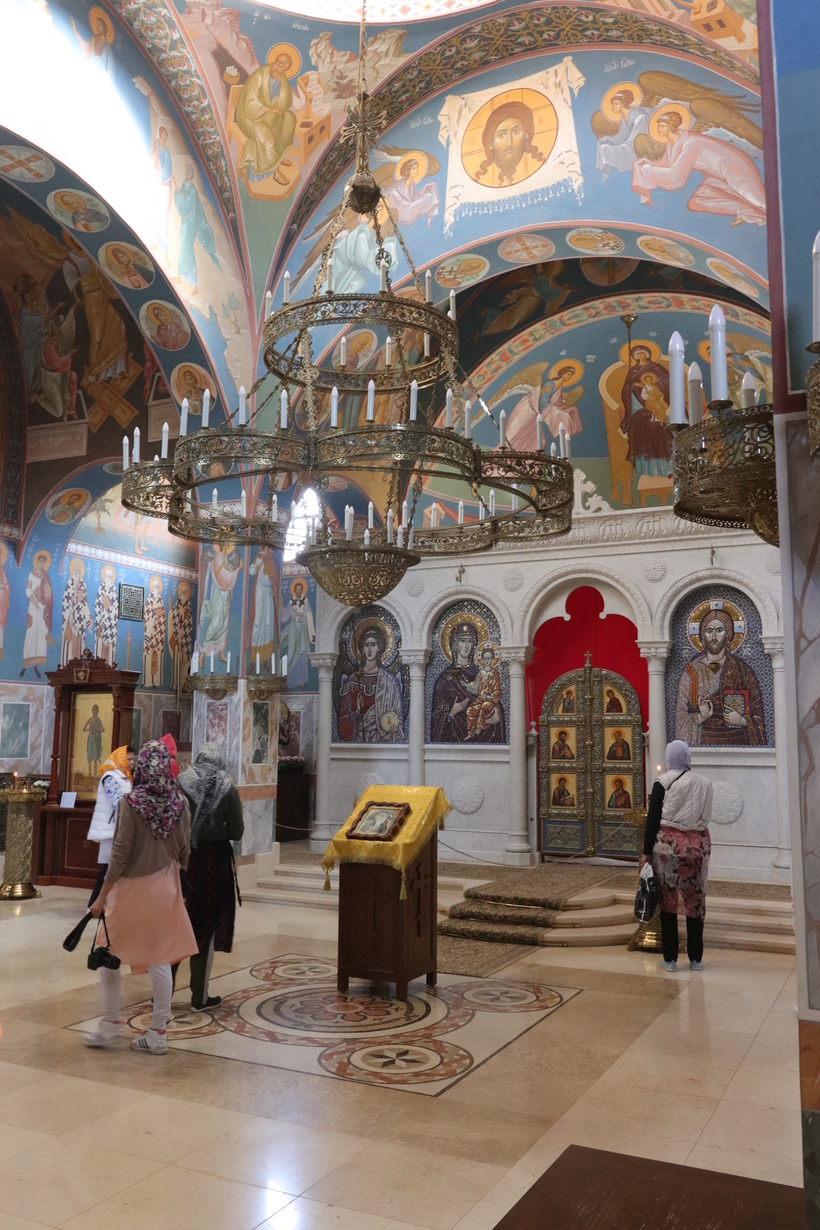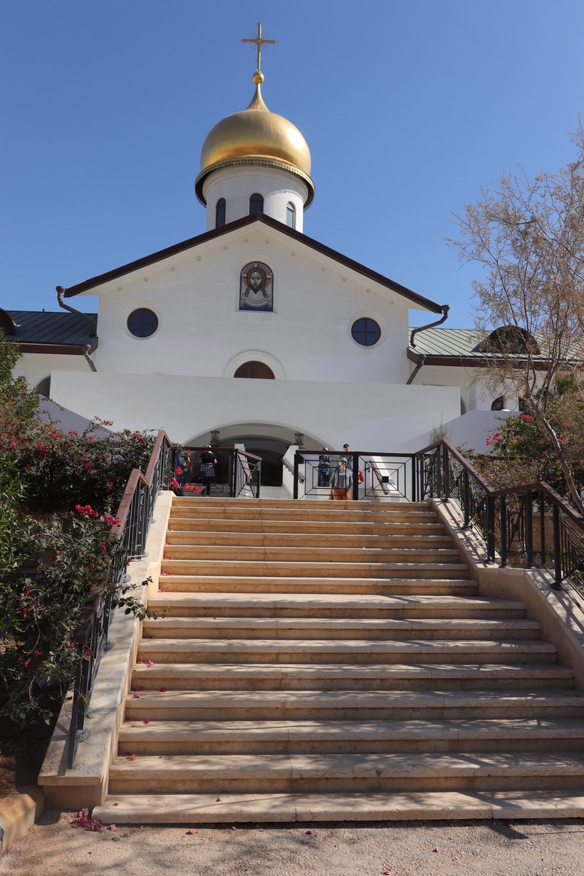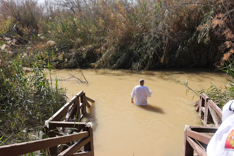 р. Иордан - место крещения Иисуса Христа, особое место для верующих, многие верят, что омовение в реке исцелит и тело и душу. То место, где мы были и где желающие могли окунуться в реку, было не очень широким, вода мутная из-за глины и песка на дне реки. Для омовения нужна была специальная рубашка, её можно было купить заранее, также можно было купить прямо там, но там их продают на порядок дороже. Рубашку после омовения нельзя стирать или полоскать, просто высушить, т.к. считается, что эта рубашка впоследствии помогает, если человек, например, заболеет или у него будут какие-то другие жизненные неурядицы, и не только ему, но и членам его семьи.