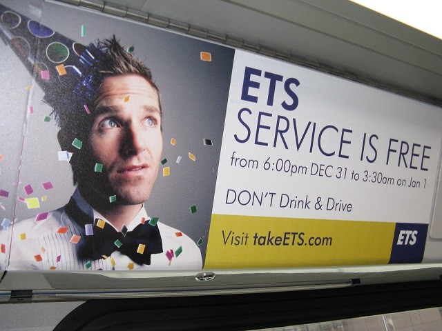 Объяявление о бесплатных автобусах в новый год.