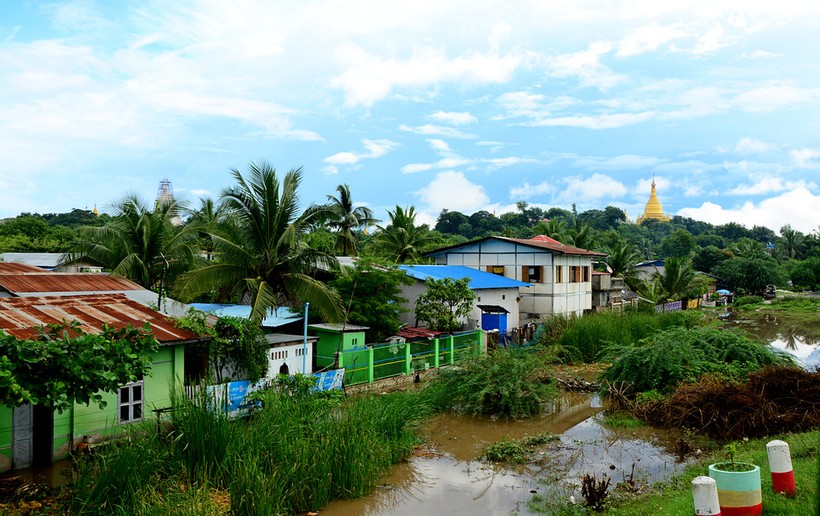 В городе есть река «Иравди», которая в сезон дождей выходит из берегов и начинает затоплять низины, где, конечно же, живут люди.