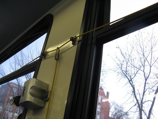 Автобусы останавливаются далеко не на всех остановках. Чтобы выйти там, где нужно, нажмите на кнопку в стояках или потяните за желтую веревку вдоль окон.