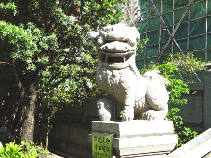 Внутренние дворики соединяют несколько малых залов. Атмосфера здесь тихая и умиротворенная. Выйдя из храма, мы вновь наткнулись на его охранника — китайского каменного льва.