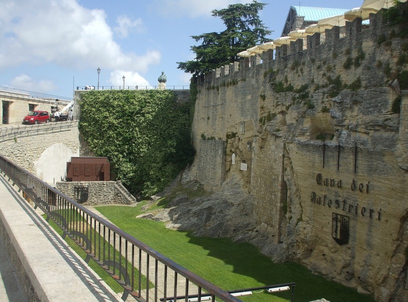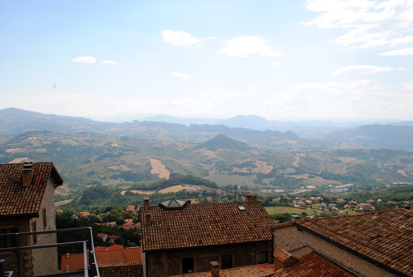 От популярного итальянского курорта Римини до столицы одного из самых маленьких государств мира, носящего то же название, что и само государство, — всего 26 километров, чуть больше получаса езды. Последние минут десять автобус поднимается на гору Монте-Титано, конечная остановка — у подножия старого города. Уже здесь от открывающихся видов захватывает дух, но я всё же советую подняться на самый верх, к башне Честа, расположенной на высоте 738 метров. В ясную погоду с её стен виден и город Римини, и даже Адриатическое море.