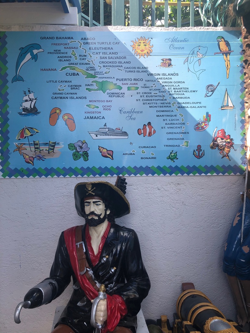 Сент-Томас известен своим буйным пиратским прошлым и эта тематика встречается во всех туристических местах. Манекены пиратов, футболки\кепки с пиратами, игровые автоматы с пиратами.