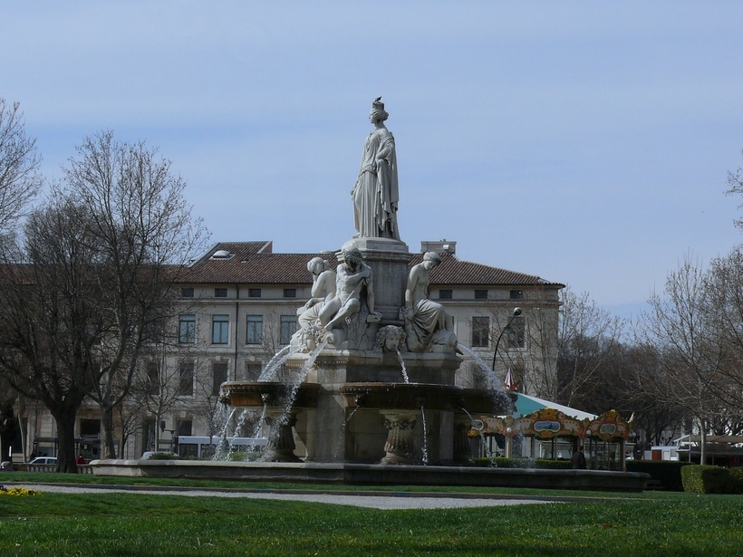 La fontaine de Pradier - фонтан Прадье. Женщина, возвышающаяся над фонтаном, олицетворяет сам Ним. Фонтан очень красивый, мы вокруг него, наверно, полчаса ходили - скульптуры одна красивее другой. Единственное, что нам мешало (не только у фонтана, но и во всем городе) - дорожное покрытие. А вернее - его отсутствие. Практически весь город не имеет заасфальтированных и покрытых брусчаткой дорожек для пешеходов, только естественная насыпь. Обувь мы там, конечно, изрядно подпортили((