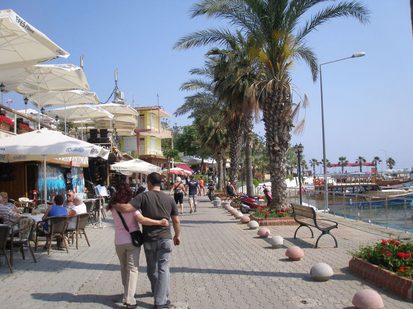 Длинная улица, ведущая к античному порту и Агоре - рыночной площади прошлых веков, наполнена барами и ресторанами на любой вкус. Кстати, это чуть ли не единственная действующая эллинистическая Агора в Турции.