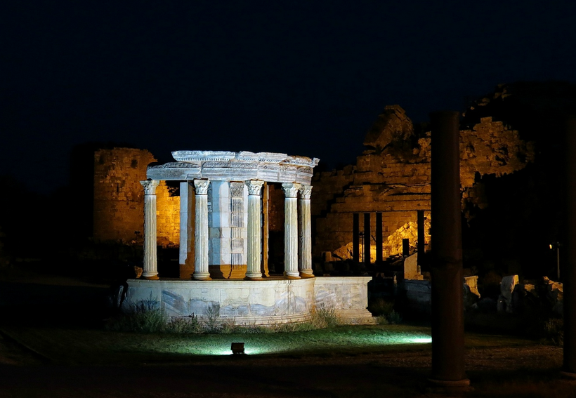 Лучше всего прогуляться по античному Сиде минимум дважды — в темное и в светлое время суток. Подсветка меняет ощущение от зданий.