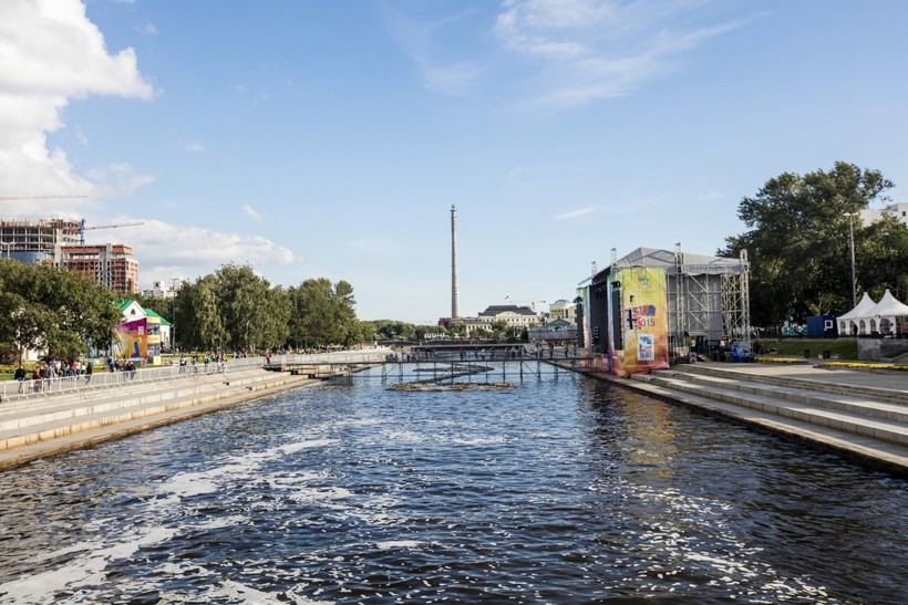 Затем мы отправились на набережную реки Исеть, а оттуда - до Храма на Крови.