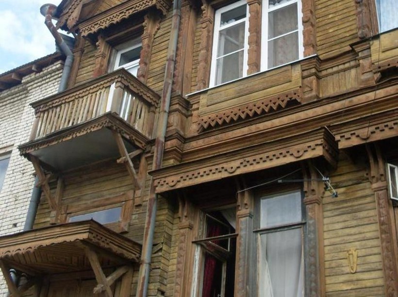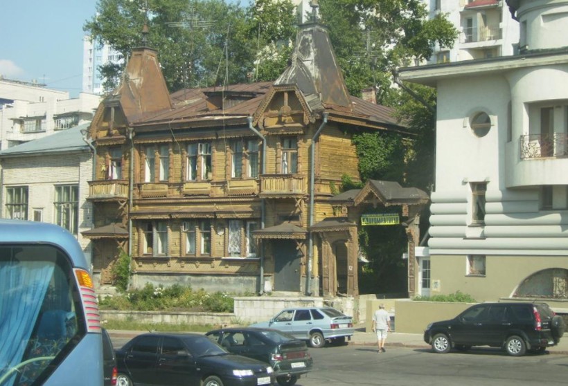Скажу честно, что я не видела, чтобы в одном месте стояли презентабельные здания и старенькие дома с резными наличниками, смотрелось странно, но что-то в этом было.