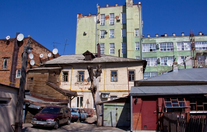 - Дома старой постройки, видно, что город активно застраивался и развивался в советское время.