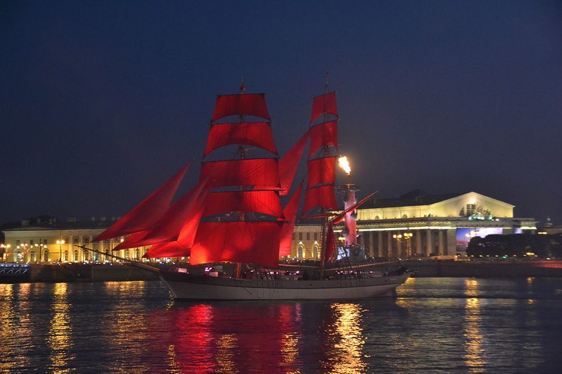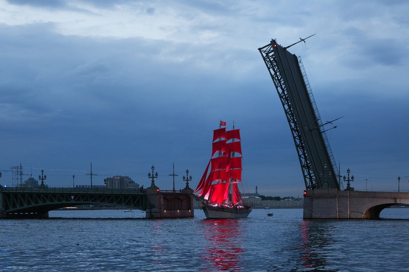 Увидеть, как по Неве плывет корабль с ярко-красными парусами, послушать концерт (правда, одна попса – но в целом не так и плохо) – ради этого придется порыться в интернете в поисках билета. Окрестные крыши тоже заняты – можно найти проводников на них, правда, им тоже придется заплатить.