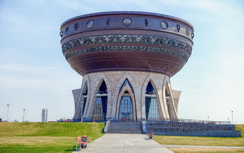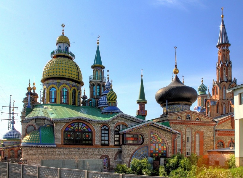 Это по-настоящему удивительное место: берег Волги и бесподобные пейзажи, сочетание всех цветов и храмов разных религий в одном сооружении. Хоть храмом он и называется, богослужений здесь никаких не ведется. Автором он задумывался как символ всех религий.