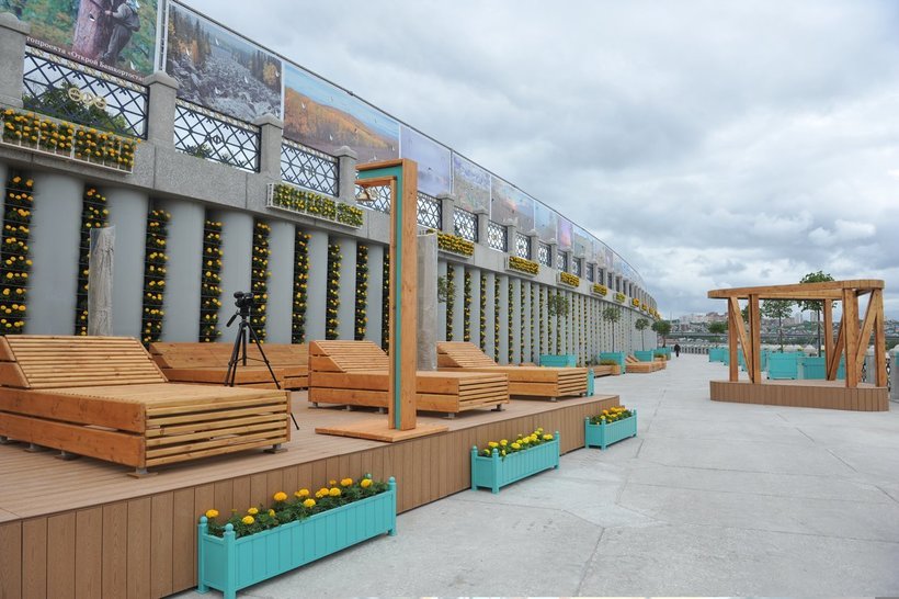 Очень красиво! Река, как будто, необъятных размеров, в смысле, что она бесконечна, а местность то горная, то зеленая. Хотя, набережная ещё строится, бытует предположение, что она будет являться главной магистралью, здесь много мест, где можно отдохнуть и устроить хорошую фотосессию. Я прямо вспомнила детство, не удержалась и устроилась на деревянных качелях.