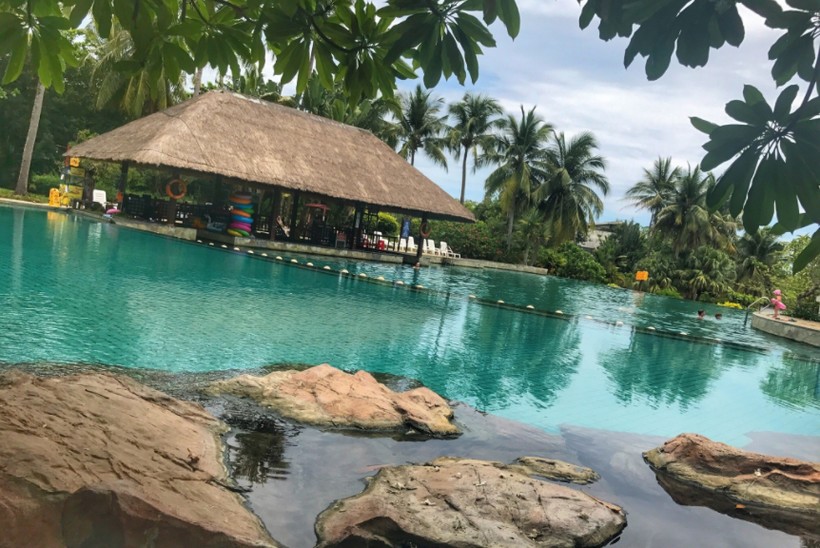 Почему именно эта бухта!? Бухту Дадунхай, даже не рассматривали( по мне это курорт Краснодарского края в пик сезона), народу тьма. Бухта Ялонг-идеально, но далеко от инфраструктуры, не хотелось ехать с ребенком далеко. Хотя и в этой бухте сейчас много кафе по доступным ценам(конечно, слово доступно воспринимает по-разному). Есть и другие варианты бухт, но они не всегда предлагаются в пакетных турах. Выбор пал на отель Pullman(Санья бэй). Отель 5 звезд, отзыв я уже оставляла по отелю, так что повторятся не буду. Отель для поездки с ребенком (от 0 до ...) подходит идеально.