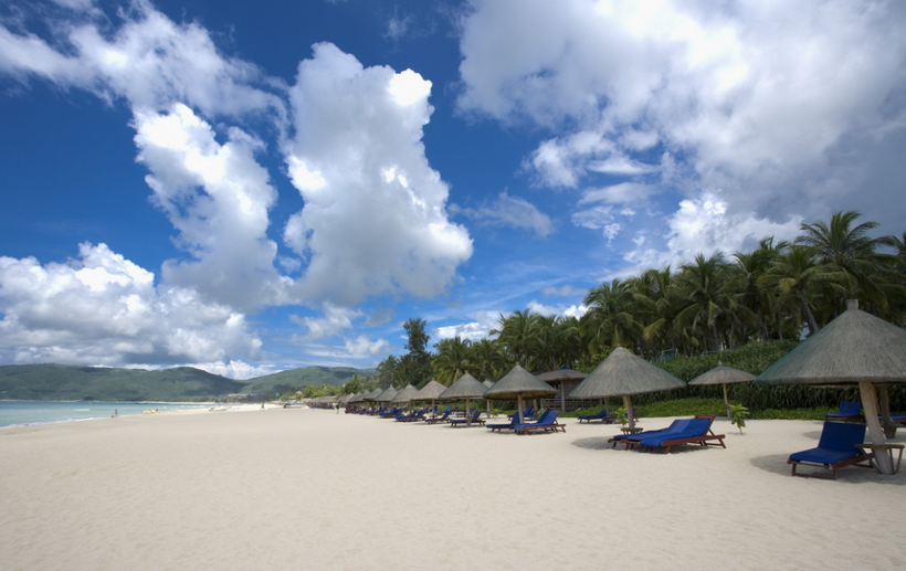 Уже при посадке во мне проснулось неумолимое желание скорее ринуться на пляж. Вид был действительно необыкновенным! Белый-белый берег, чистая лазурная вода и высоченные зелёные пальмы - всё это, будто всего лишь рисунок с открытки. Здесь можно было заняться чем угодно, начиная от дайвинга и заканчивая гольфом. Всем этим меня радовал теперь уже любимый Залив Ялунвань.