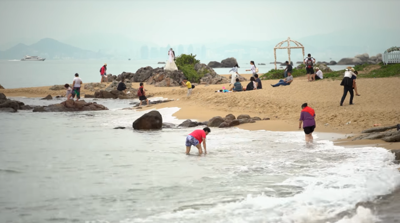 Если хотите уединиться, тогда рекомендую заплыть в бухту Ялунвань, она невероятно живописная, море в ней мелкое, прямо в воде каменные острова, а сам песок такой белый, что не верится, что он таким бывает.