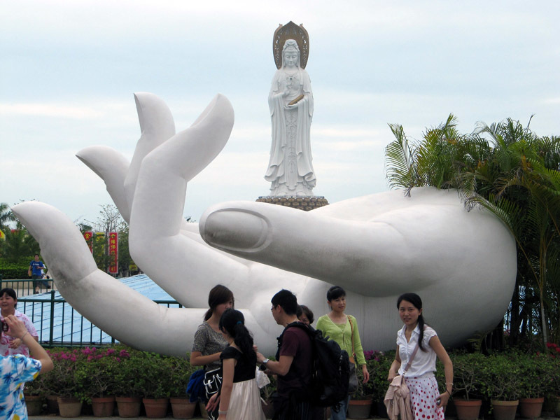 Несмотря на то, что мы с родителями приехали на Хайнань с чёткой целью отдохнуть от насыщенных путешествий, в скором времени выяснилось, что мы совершенно не способны долго сидеть на одном месте, а тем более в стенах отеля. Так что мы отправились изучать местные достопримечательности. Пожалуй, самый главный центр притяжения туристов и паломников в округе Санья (а, возможно, и на всём Хайнане) — это центр буддизма Наньшань. Это самый большой такой центр в Азии, на его территории есть несколько храмов, парки, искусственные пруды и многое другое. Но, если честно, под конец путешествия по Китаю все буддистские храмы кажутся одинаковыми и не производят особого впечатления.