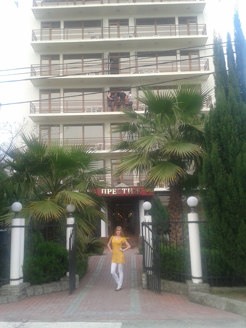 На майские праздники 2016 мы решили с родителями поехать в Сочи на машине. Дорога была долгая, туда мы ехали с одной ночевкой, обратно уже без остановок, очень насыщенная неделя получилась!Приехав, мы заселились в забронированный отель «Престиж», простенький, советского типа, но нам этого хватило. Завтраки были включены, в остальное время мы обедали в различных местах.