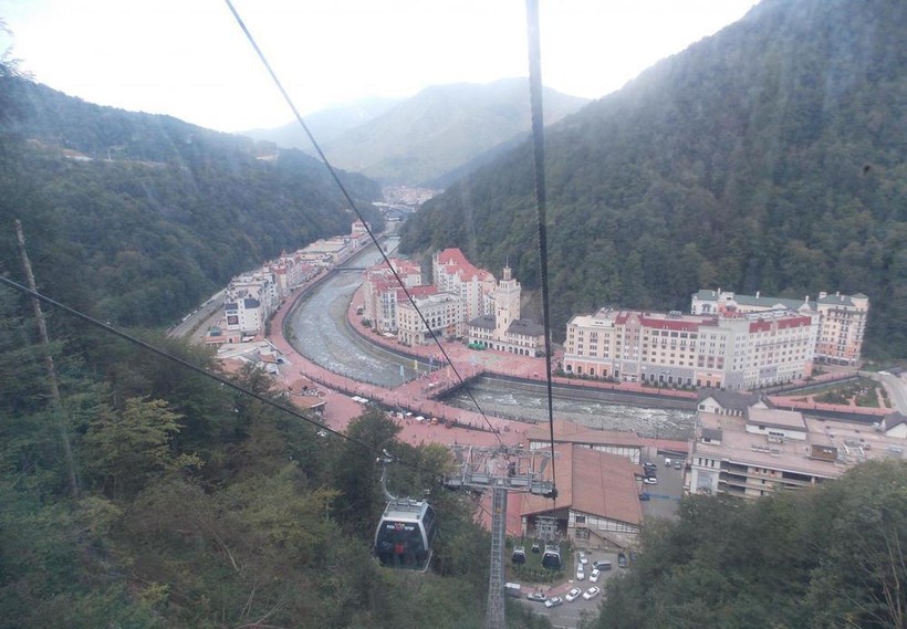 Ну а что касается развлечений, то в городе их полно, даже ночью можно не спать, а проводить время за танцами, хотя я не любитель такого отдыха. Из развлечений, которые щекочут нервишки, я выбрала прогулку по канатной дороге над курортом «Роза Хутор». Стоимость подъема на тот момент была 950 рублей, а вид такой, что я не могла не запечатлеть его на фото.