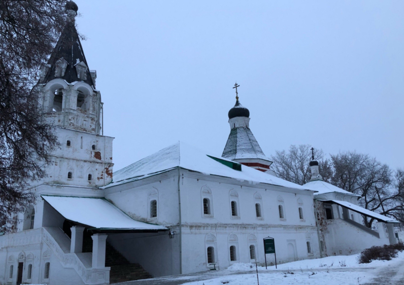 Свою пешую прогулку (2 км) по Александрову мы начали с бывшей столицы Опричнины — Александровой слободы, которая находится на Музейном проезде. Здесь царь Иоанн Грозный жил вместе со своими опричниками. В слободе мы посетили колокольню (билет стоит 40 рублей), погуляли по старинным зданиям: Трапезной палате, Успенской церкви, Домовому храму, Покровской церкви и Дворцовым палатам Иоанна Грозного. В слободе постоянно работает выставка «Сокровища трех веков», где собраны древние книги, иконы и ткани.