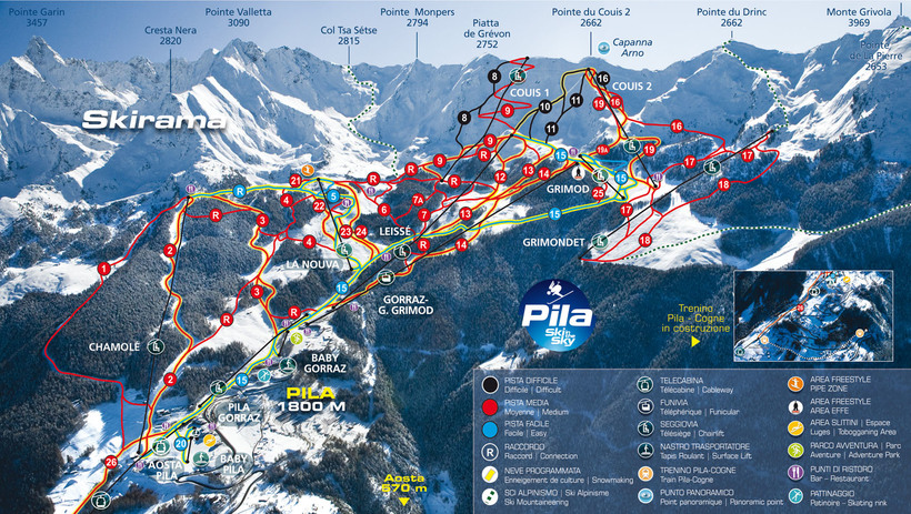Пила, помимо лыжных трасс и подъемников содержит типовые для большинства итальянских городов достопримечательности: археологический музей, остатки римской и средневековой архитектуры, кафедральный собор, пару замков.