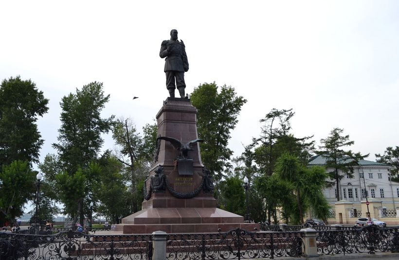 Мы были в Иркутске проездом, однако, он из тех городов, где памятники и разные достопримечательности встречаются на каждом шагу. Вот, например, мы сначала увидели еще издалека памятник Колчаку: