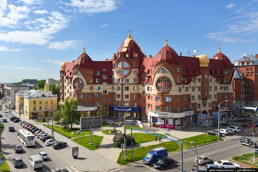 Must-see здесь – старинные особняки. Например, дом купца Шадрина с невероятной деревянной резьбой (на фото ниже). На соседней улице расположен «небоскрёб» в 4 этажа – доходный дом Аверина, кирпичный дом с башенками. В 1915 году он действительно возвышался над всей деревянной округой… А нынче в Барнауле планируют целый квартал 25-этажек.