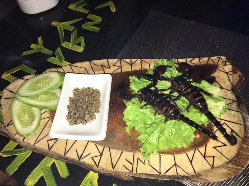 - Местная еда. Это, безусловно, экзотично. Страусятина, крокодилятина, лягушки, скорпионы… Вообще, сами вьетнамцы больше едят рис и лапшу. Если честно, еда на любителя. Я с удовольствием ела не всё.