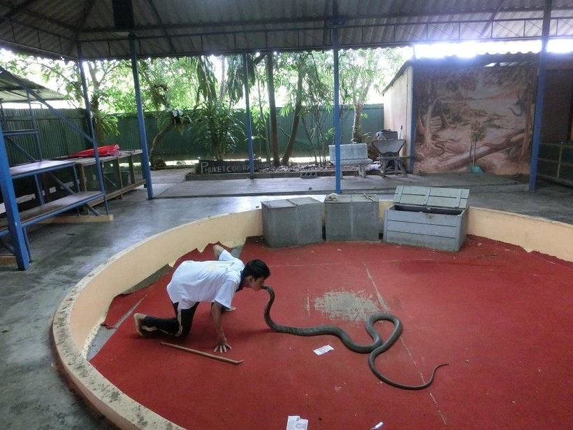 Но просто целыми днями загорать – это, конечно, не для нас. В итоге, решили скататься на змеиную ферму. Я сама змей боюсь до дрожи в коленках, поэтому смотреть, как дрессировщик управляет змеями, будто они игрушечные, было очень захватывающе. Видно, даже к кобре можно найти свой подход.