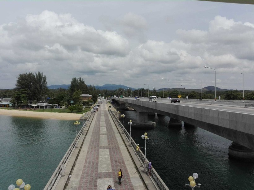 От материка остров Пхукет отделяет пролив Пакпхра , а мост Сарасин с 1967 года соединяет остров и материк . Длина моста 700 метров, и существует поверье , что перед вьездом на мост надо загадать желание и задержать дыханиеЮ пока вы пересекаете мост , и тогда желание точно сбудется. В 2011 году рядом с мостом Сарасин был построен новый мост, который называется Тхепкасаттри и по которому проходит траффик . А мост Сарасин был преобразован в туристическую достопримечательность; пешеходный мост, с которого можно: ловить рыбу, делать красивые фото и любоваться закатом.