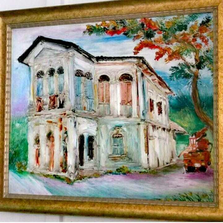 Первый раз этот дом я увидела в 2011 году. Он представлял жалкое зрелище.... А рядом с ним уже гудели бульдозеры. Неужели снесут? Художник уже запечатлел дом для потомков на этой картине.