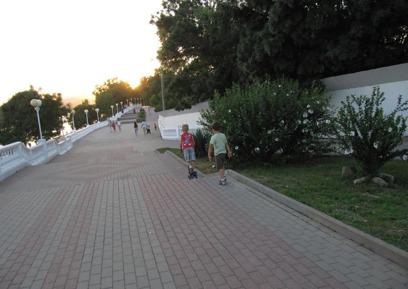 Вечерами я гуляла по набережной, вся она выложена плиткой, есть лавочки и много разной зелени.