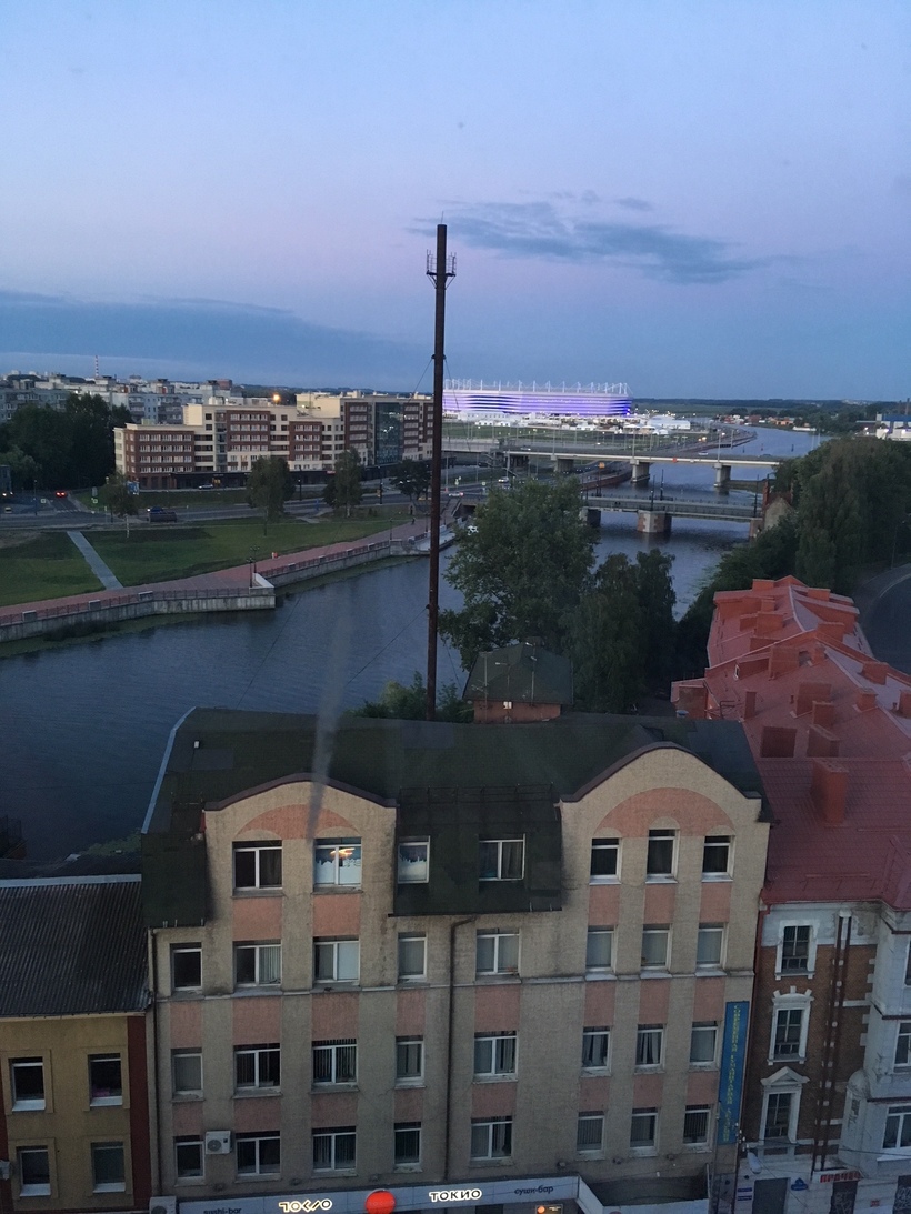 Место локации, как оказалось, было выбрано правильно. Апартаменты располагались на набережной реки Преголя, чудесный вид из панорамных окон на новый стадион и город прилагался.