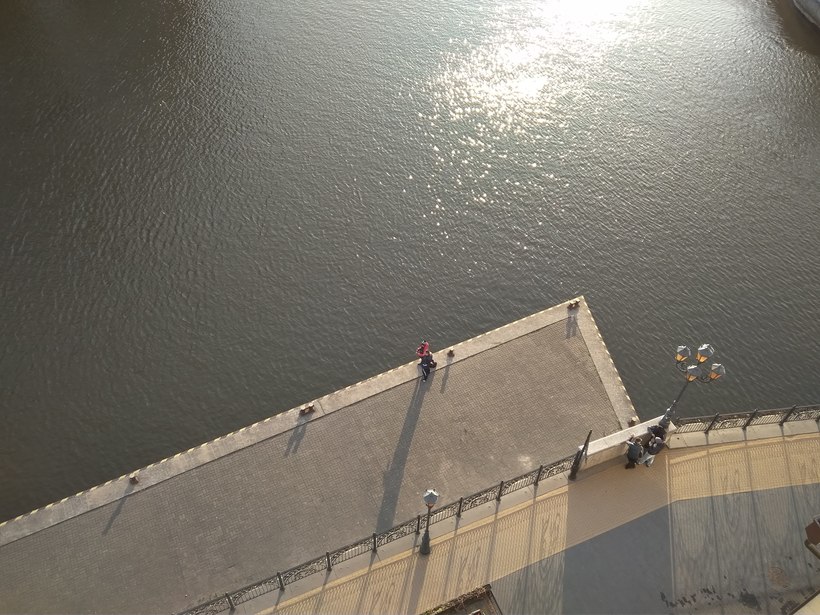 Кстати, именно на набережной виден контраст архитектуры, если стать на мост, то видны современные постройки, а за ними старые серые «коробки».