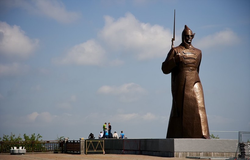 Еще одним интересным мне местом в Ставрополе является Крепостная гора. Избалованная горными видами Кавказских Минеральных Вод, я не могу в полной мере оценить виды города с нее, да и восхищаться этой ставропольской горой не получается, но это место 100% заслуживает внимания всех тех, кто посещает город впервые. Хотя бы потому, что на смотровой площадке стоит огромных размеров памятник красногвардейцу и грозно смотрит вдаль. Да и вечерним видом со смотровой площадки насладиться тоже неплохо.