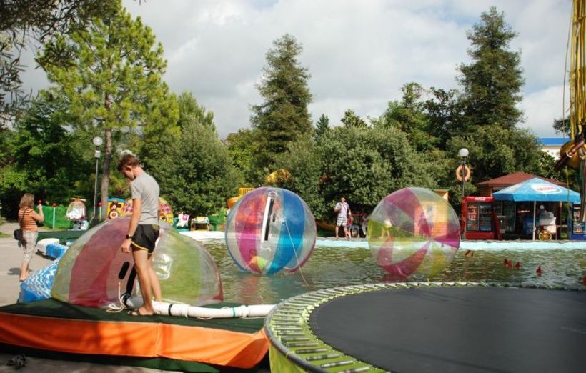 Потом, после прогулки по удивительной тропинке, можно посетить парк развлечений. Там огромное количество аттракционов, некоторые были очень забавными и подходили для людей разного возраста! Вот, например, развлечение - "Бег по воде", находясь в небольшом шаре! Оказывается, в нем действительно очень трудно передвигаться!