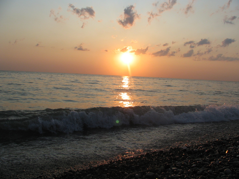 О, наконец-то мы добрались до моря. Оно было поистине великолепным. Погода была отличная, море - ярко-синее и спокойное, с легкой рябью без ярко-выраженных волн, пляж - галечный. Идеальное сочетание. Гальку я люблю больше песка. По ней приятно ходить, минус, конечно, что когда она нагревается, то горячевато, но с другой стороны - это не песок, который набивается везде и всюду и вечно норовит испортить жизнь.