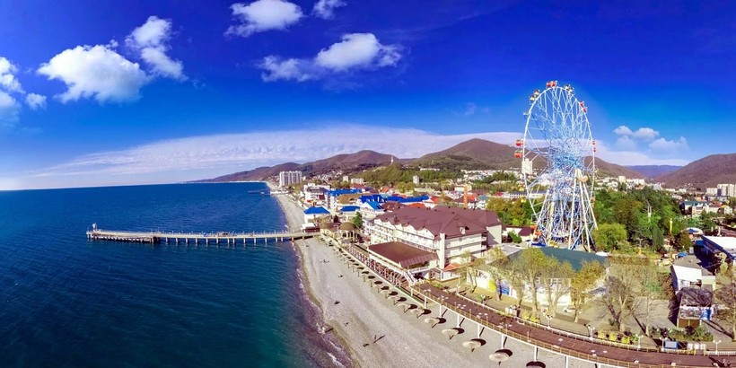 Набережная в Лазаревском заканчивается парком аттракционов со знаменитым, самым большим колесом обозрения в России (высота 83 метра). В шторм катание на нем запрещено. За все время нашего отпуска колесо обозрения работало 1 день. Имеются открытые и закрытые кабинки. Очень душещипательный аттракцион, который остается ярким отпечатком в памяти на долгое время!