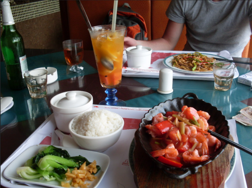 Китайская еда была мне уже более-менее знакома, так как за год до этого я была в Шанхае. Однако мы с семьей смогли найти “русское” кафе, где была более привычная нам еда (по крайней мере, пережить сырую морковь вместо вареной в оливье проще, чем сладкое-сладкое мясо в сладком китайском соусе). Подружиться с китайской кухней, ее вкусом и запахом мы так и не смогли. Также как и с привычкой китайцев харкать себе под ноги везде и повсюду :)