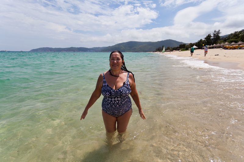 - Климат. В Санье очень влажно, лицо и тело всегда покрыты мелкой испариной, никакие крема на лице не держаться. Даже если на небе облака, солнце очень, подчеркну - очень! - активное, необходимо пользоваться кремами с индексом не менее 50, и это не рекомендация, а строжайшее правило, потому что обгореть здесь очень легко, что несомненно, испортит вам весь отпуск. Мы отдыхали в феврале, сразу после китайского Нового года. Погда была отличная, дождик был всего один раз, примерно на час. В остальное время солнце прогревало воздух до 27 градусов, а вода была порой даже теплее, чем воздух.