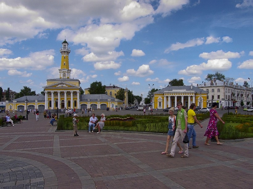 Самое узнаваемое здание в Костроме - это, бесспорно, пожарная каланча, которая находится как раз в центре, на Сусанинской площади, мимо не пройдете. Это и памятник архитектуры, и символ города, который изображают на открытках и сувенирах. В каланче открыт и действует музей пожарного дела. А напротив каланчи - бронзовый памятник собаке.