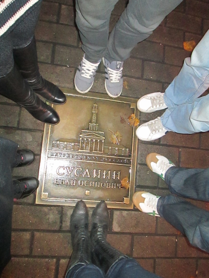 Пешком от отеля до центра по Молочной горе я дошла за 10 минут. Минуя аллею "звезд" - памятные знаки в честь знаменитых костормчан. Например, Иван Сусанин жил здесь. Вы знали? И я не знала). На Молочной горе ему воздвигли памятник, костромчане гордятся своим земляком.