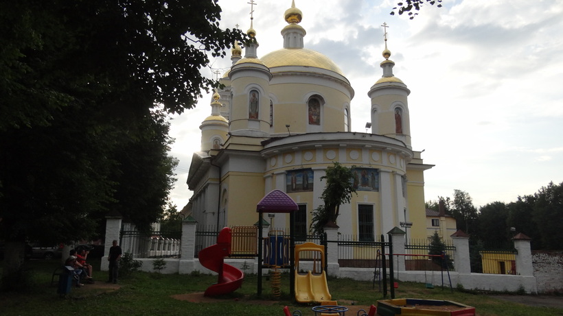 - Троицкий собор. Возможно, единственное по-настоящему красивое здание в городе. Смотрится очень эффектно и с разных ракурсов. К сожалению, когда я приехал, там только-только закончилась служба, после чего прямо при мне на замок заперли не только само здание, но и ворота ограды.