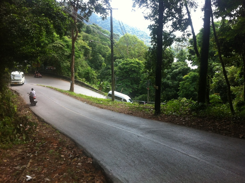На Ко Чанг я прибыл паромом с пирса Natural Bay. Время от материка до острова около 30 минут. На берегу встречали несколько машин такси в виде тентованных джипов и небольших микроавтобусов. Я выбрал джип потому, что с него вид лучше и стоит он всего 100 бат. Забронированный мною отель находился на юге острова. Это примерно 45 минут пути. Мы неслись серпантинам с такой скоростью, что я боялся вылететь из машины, но насладиться красивыми видами всё же успел.