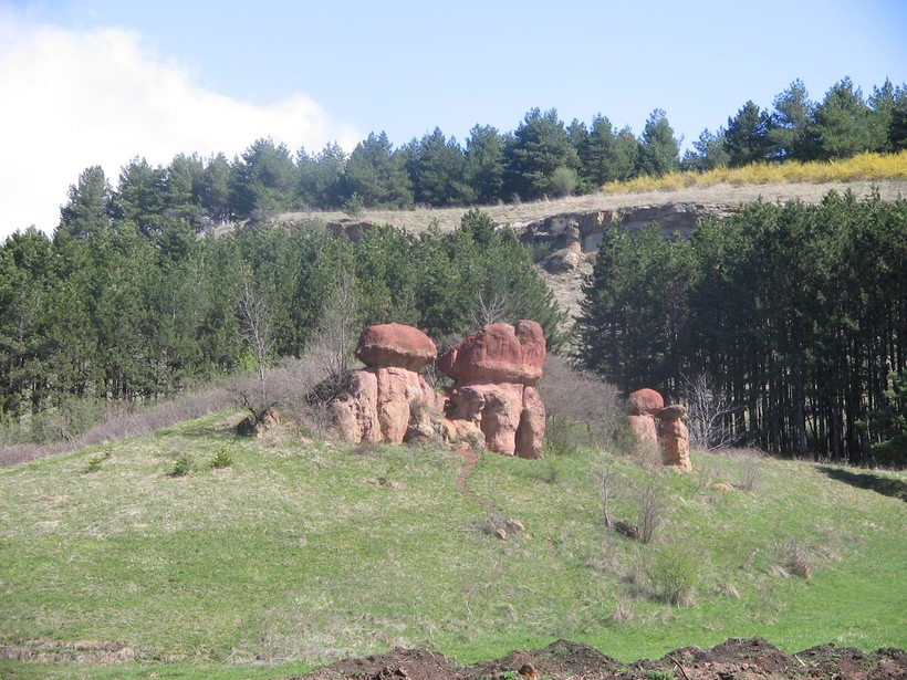 Здесь есть два феноменальных места – синие и красные камни. Синие – они больше серые, не произвели особого впечатления, валуны как валуны. Конечно, голубой оттенок присутствует, но не настолько, чтобы из этих камней соорудили достопримечательность. Возможно, когда эти камни сырые, они имеют более яркий оттенок, но проверить нам и в голову не пришло.