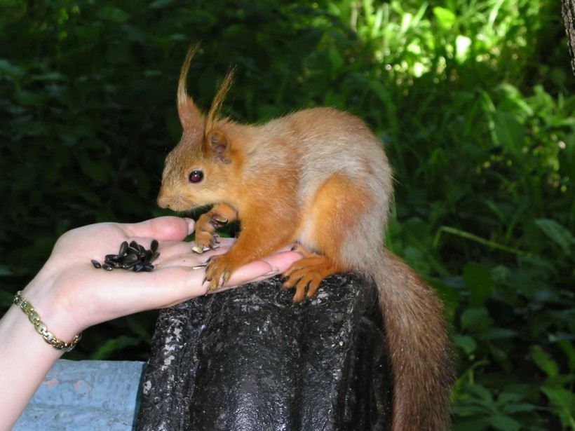 Купите заранее семечек или орешков. В парке много не только белок, но и птиц.