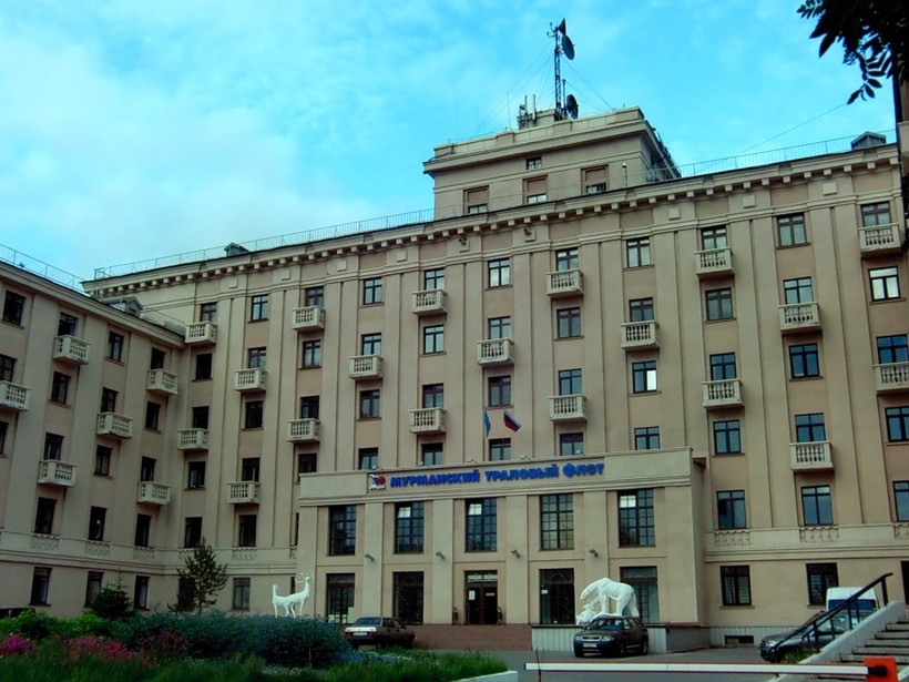 Меня очень привлекло здание тралового флота. На самом деле, я даже не совсем понимала, что это. Но это даже было не важно. Рядом со зданием есть парочка очень трогательных скульптурных композиций. Первая - это Умка с мамой. может быть это, конечно, и не Умка, но очень похож. Очень милый памятник, даже трогательный. И тут же стоит пара оленей, они белоснежные, очень красивые и притягивают взгляд.