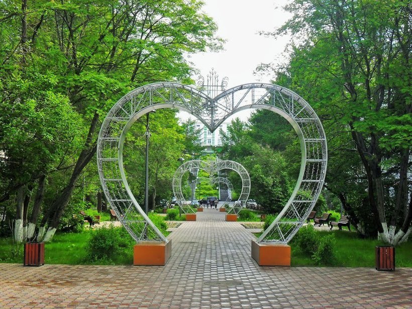 Мне очень понравилась аллея из сердец. Не знаю, с какой целью она возведена, но я бы прошлась по ней в день моего бракосочетания.