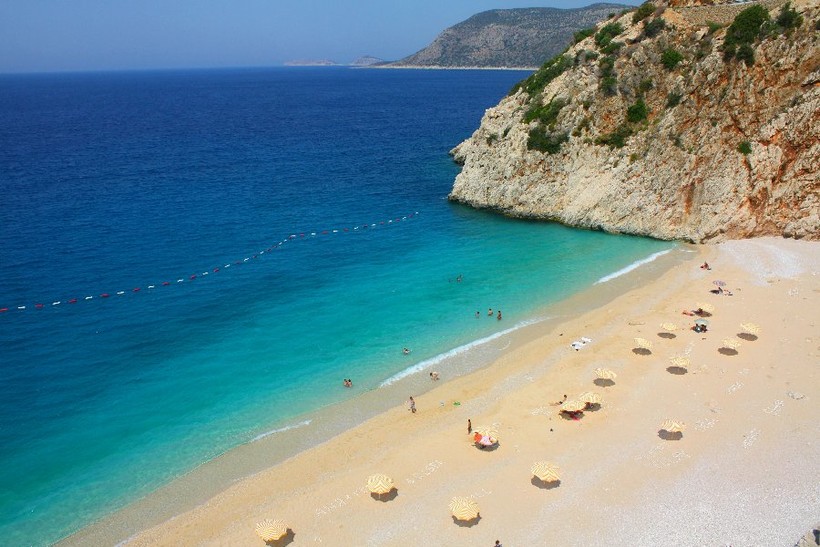 - Пляж Капуташ – находится за пределами Каша, но безумно красив. Вам точно следует его посетить, если вы приехали в Каш. Берег здесь песчаный, вода лазурно-голубая. Кстати, обязательно возьмите маски для подводного плаванья на всех членов семьи! См. фото ниже.