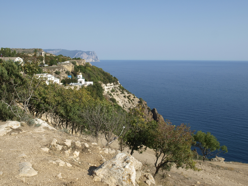 Между мысом Фиолент и Мраморной балкой расположен удивительный Балаклавский Георгиевский монастырь. Кстати и сам мыс Фиолент удивит вас своей красотой. Мы сами очень любим это место. Но при поездке нужна удобная обувь. Каблуки не для этой местности!