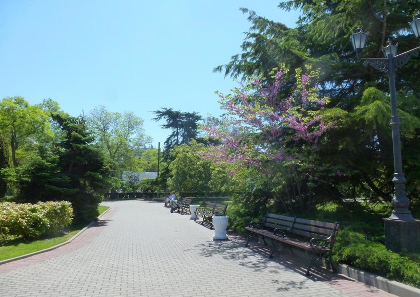 Парк победы. Пройдя по тропинке, усаженной каштанами, вы попадёте на море.